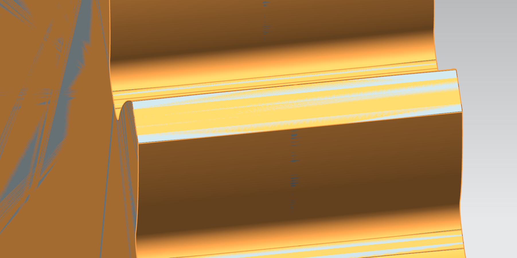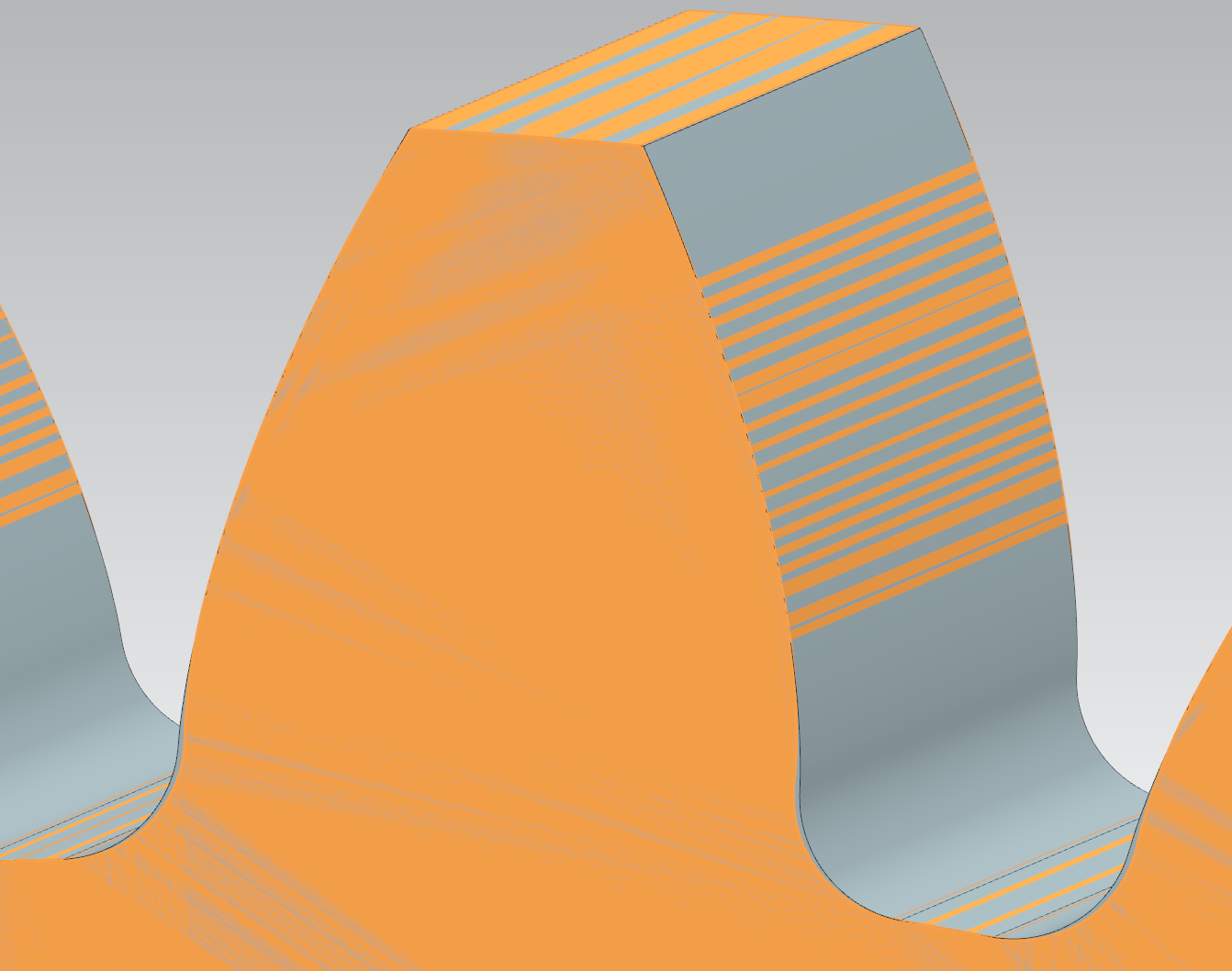 A middle portion overlaps — material has been removed from the tip and root areas.